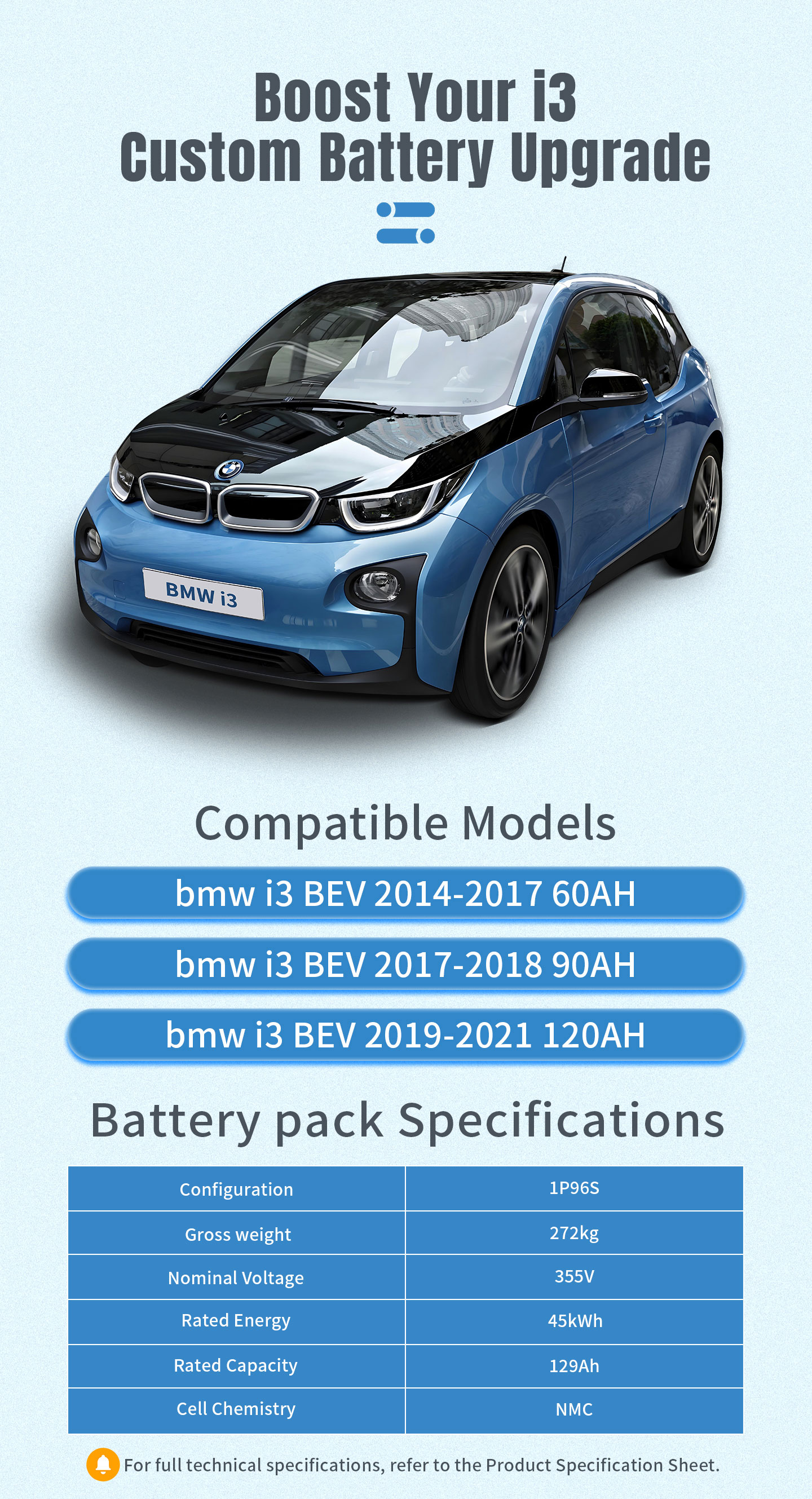 BMW i3 Battery Module Kit 45kWh Long cycle life 300kms New Car Range